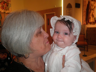 On Sunday, Lily was baptised. She looked so adorable! Babies should be required to wear bonnets everyday. So stinkin' cute!!!